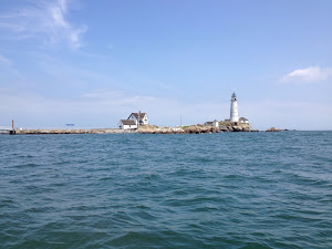 Today is our 42nd anniversary! Gretchen and I both wonder how that is possible? :) The wind forecast was for 5-10 mph so we headed once again for the Boston Harbor Light. Ten mph winds and one foot waves made for a delightful sail to the lighthouse today followed by a five and a half mile broad reach into Boston Harbor.